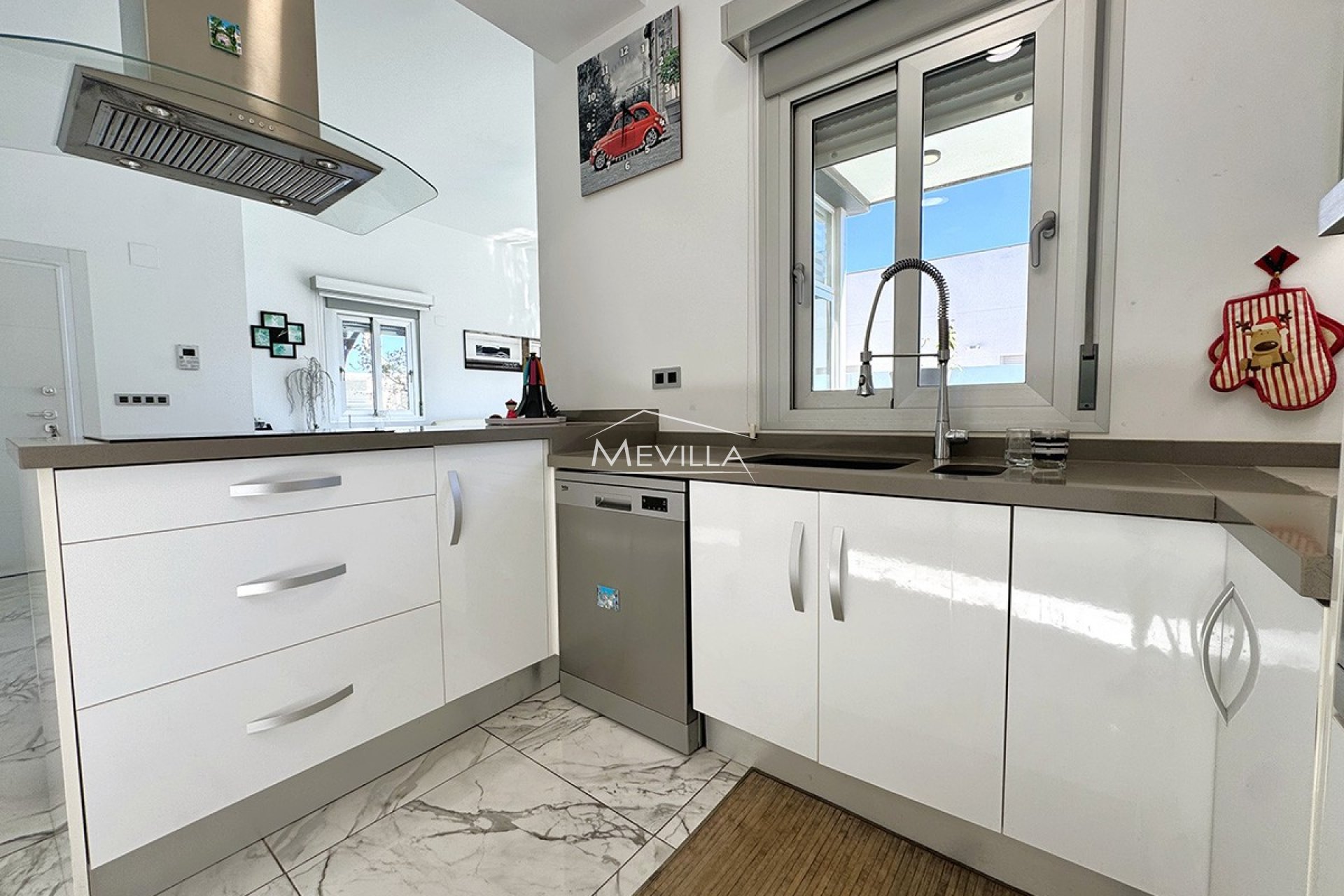 Denne moderne villaen har et bygget areal på ca. 150 m² på en tomt på 340 m². Eiendommen har store uteområder med overbygde og åpne terrasser, et nydelig oppvarmet svømmebasseng og et spektakulært solarium på 100 m², perfekt for å slappe av, arrangere sammenkomster med familie og venner eller bare nyte det fantastiske middelhavsklimaet.