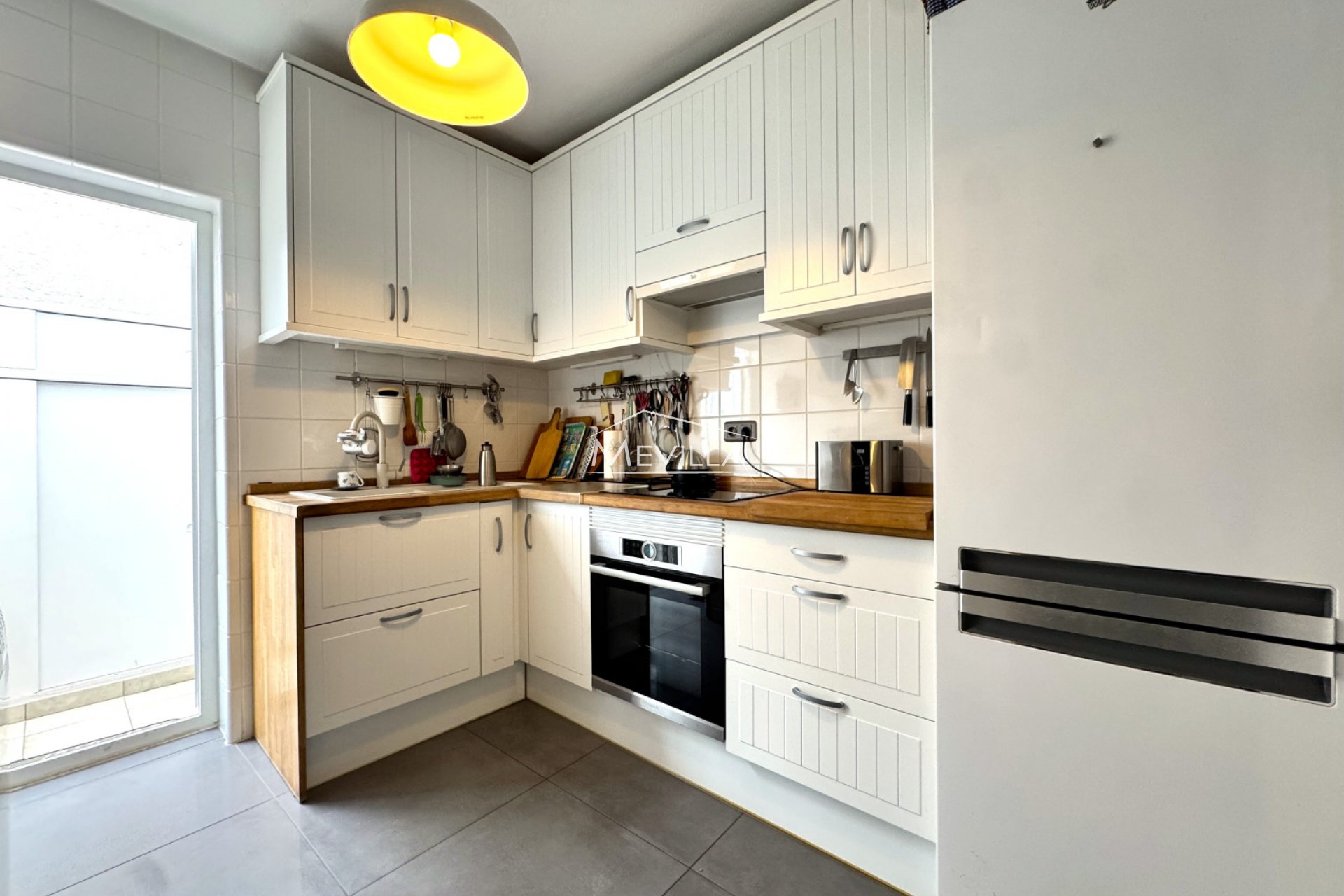 Boligen har også en vakker innglasset terrasse, perfekt for å nyte utsikten over nabolaget og hagene hele året, i tillegg til et praktisk vaskerom og en privat garasje som gir ekstra komfort og lagringsplass. Den har også aircondition og solpaneler, noe som forbedrer energieffektiviteten og hverdagskomforten.