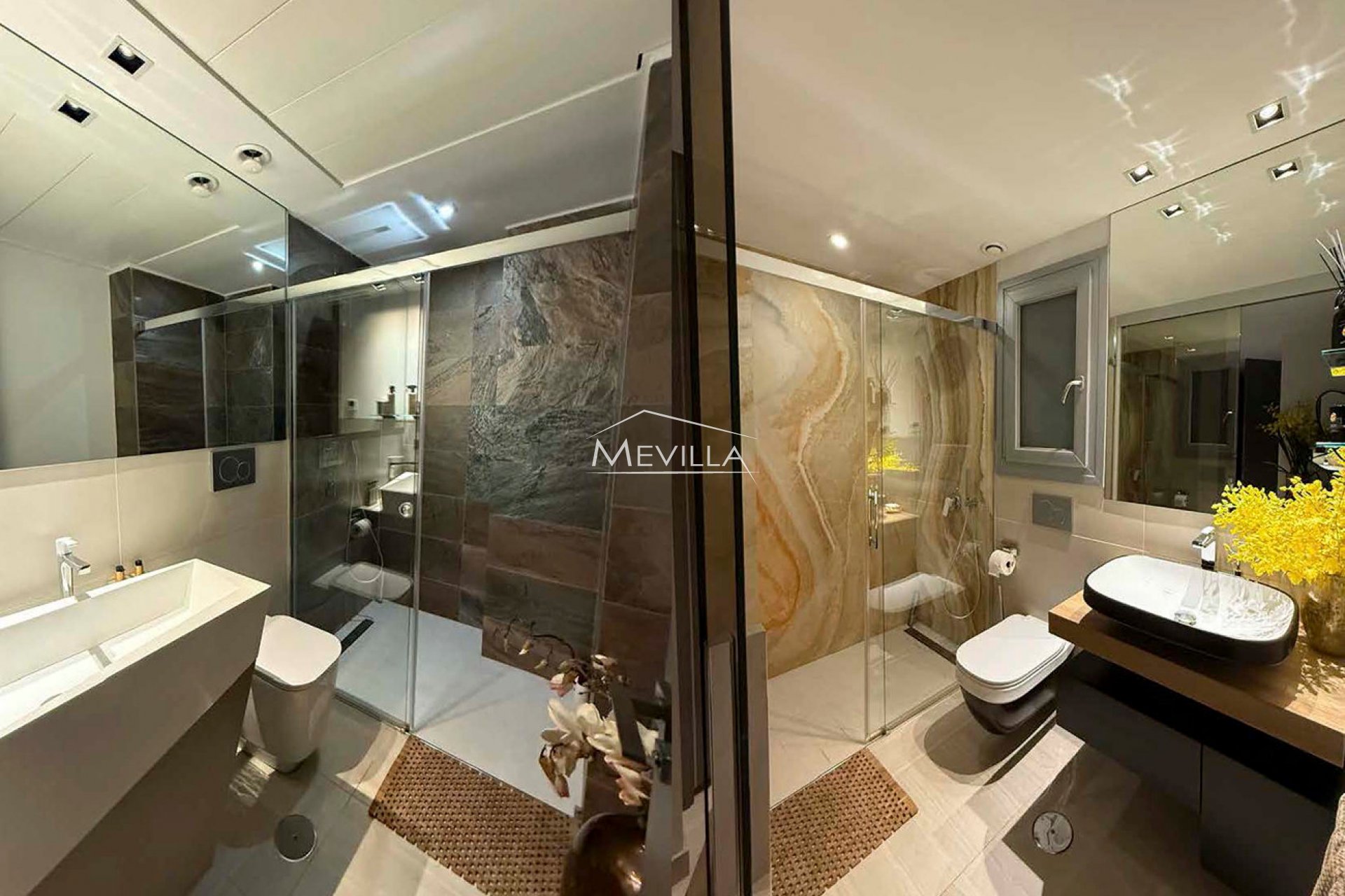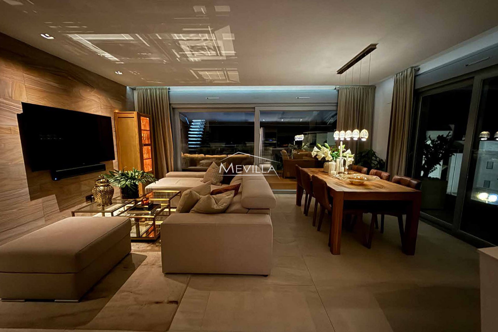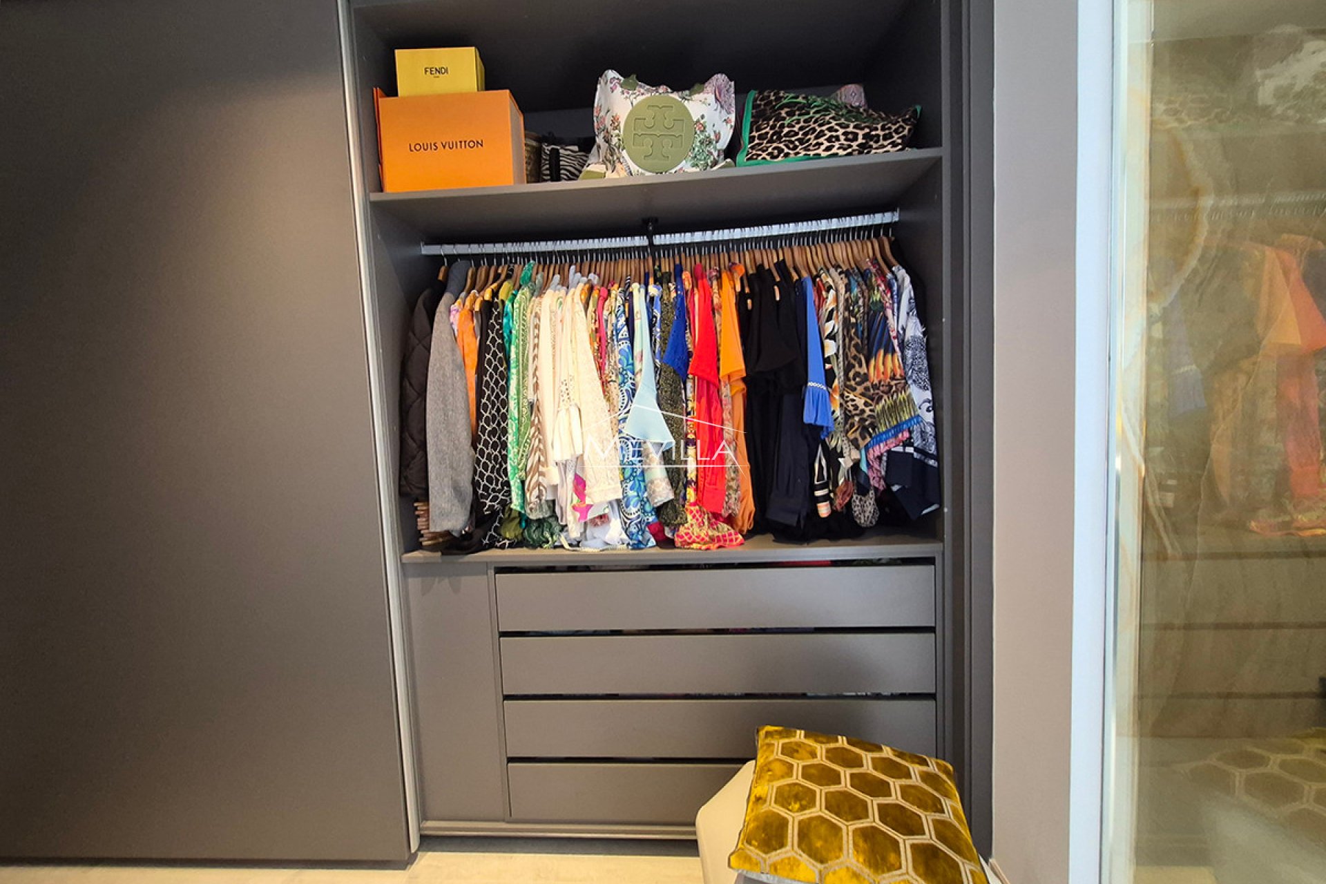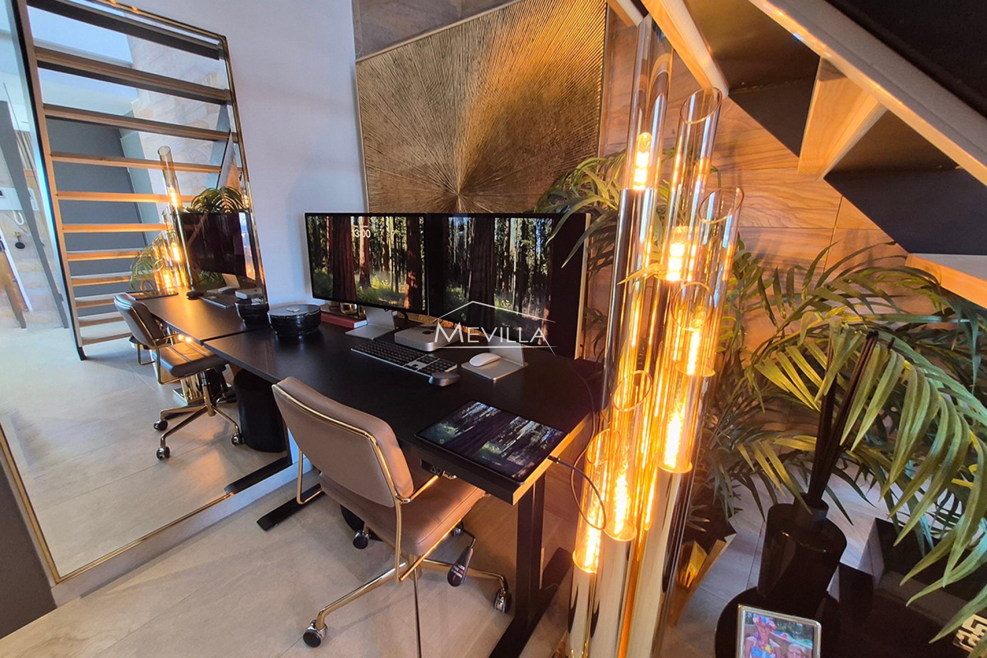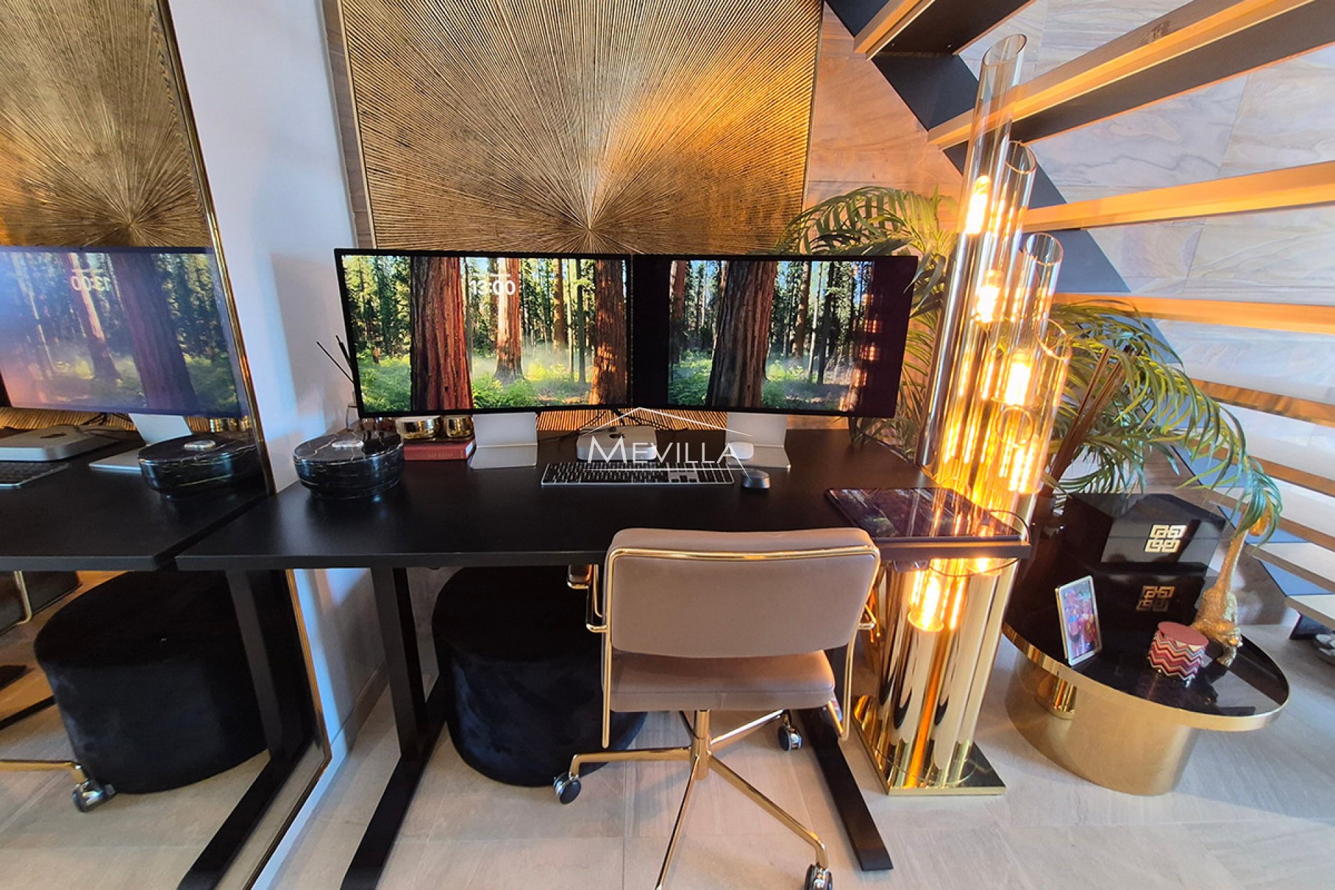 From the living room, you access a 36 m² main terrace—perfect for enjoying the Mediterranean climate and the beautiful views of the private gardens and the sea. The real gem is the private rooftop solarium, featuring a chill-out area, jacuzzi, and fully equipped summer kitchen, where the views are truly breathtaking.