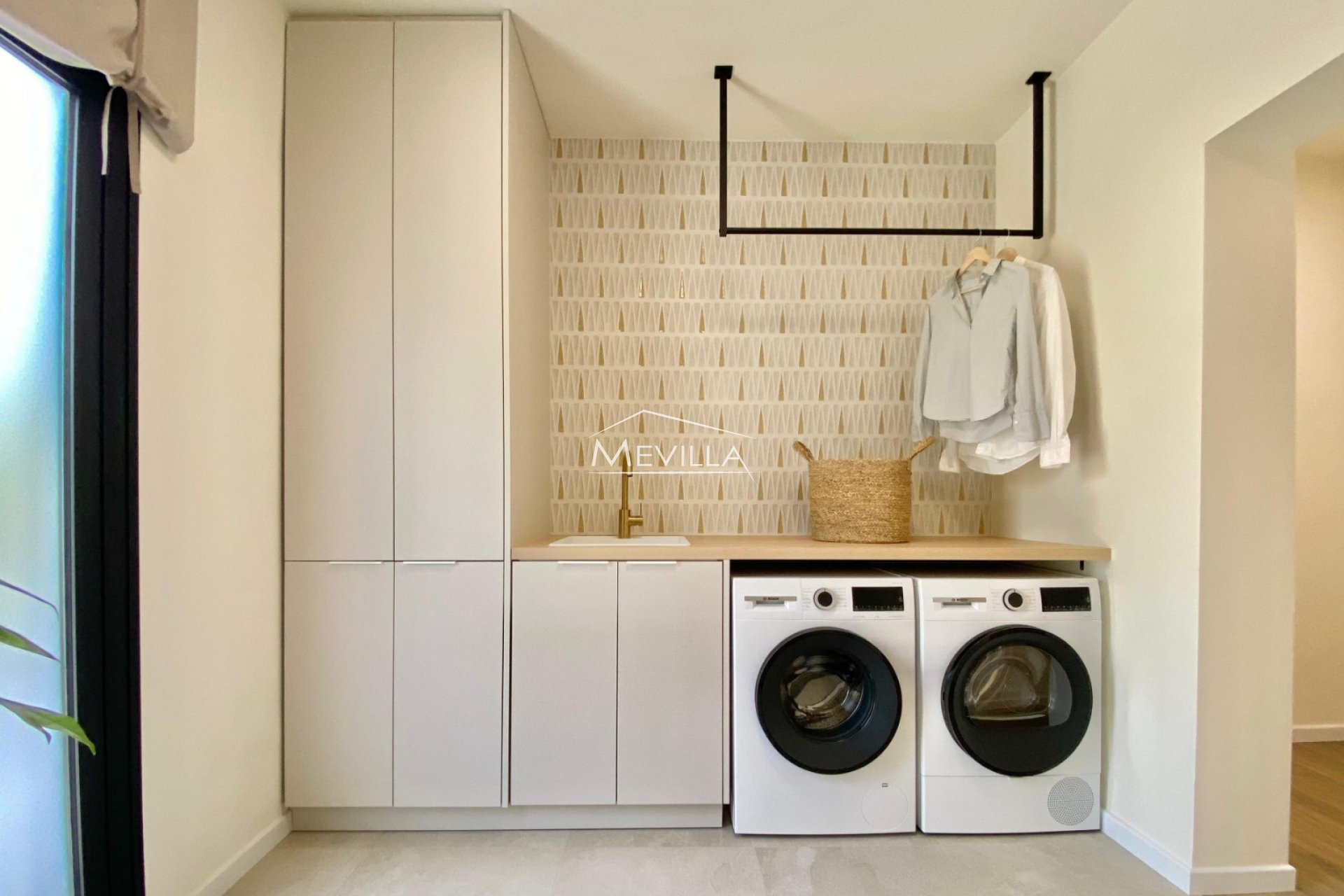 Located just 300 meters from the beautiful harbor and the beach of Cabo Roig, this exquisite detached villa combines modern Mediterranean design with a perfect fusion of comfort and style. Situated in the heart of the sought-after area of Cabo Roig, the property is located on a quiet residential street, offering a peaceful environment while being within walking distance of local amenities, including a supermarket just 170 meters away.